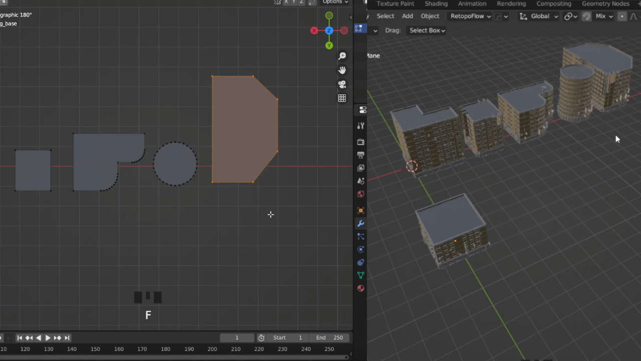 - Blender နဲ့မြို့တခု ဖန်တီးမည်ဆိုပါက အဆောက်အဦများကို ပုံစံမျိုးစုံနဲ့ အလွယ်တကူပြုလုပ်နိုင်တဲ့နည်းဖြစ်ပါတယ်။