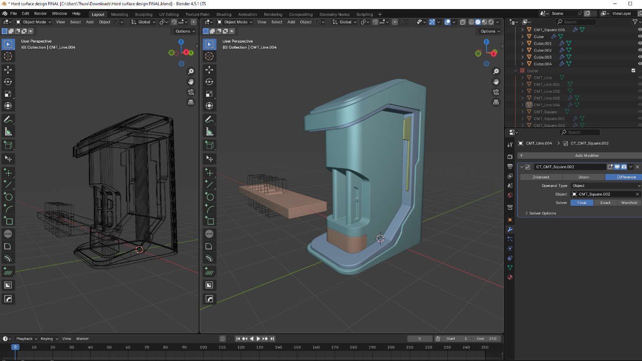 - Blender မှာ Hardsurface modeling ကို Boolean ကိုသုံးပြီး Quality ကောင်းကောင်းရအောင် Modeling လုပ်လို့ရပါတယ်။